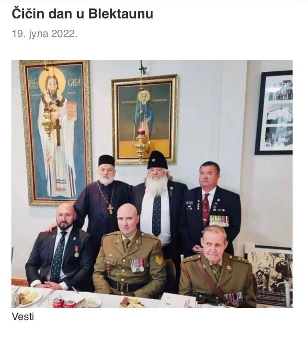 Serving ADF officers pose with Serbian Chetniks in Blacktown, NSW, July, 2022, taken from extremist Serbian newspaper article / Facebook