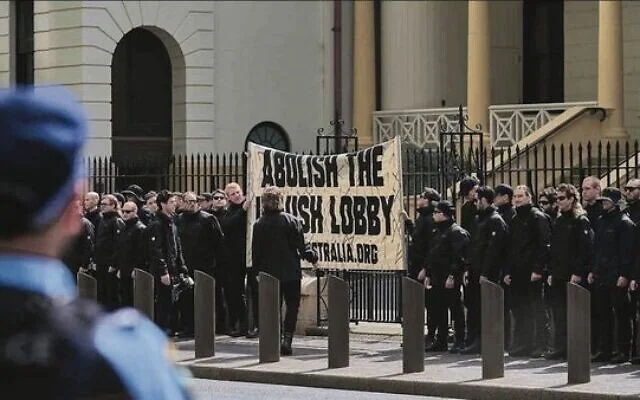 In November 2025, about 60 men from the National Socialist Network (NSN) gathered outside New South Wales Parliament, clad in black, chanting the Hitler Youth slogan "blood and honour" and waving a banner demanding, “Abolish the Jewish lobby.”